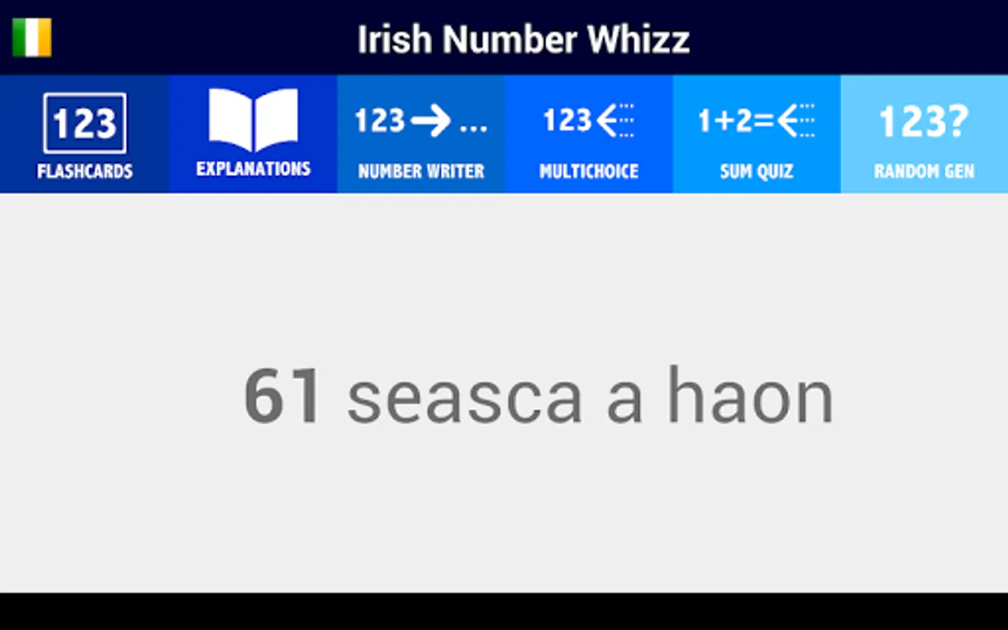 Irish Number Whizz acts as a learning tool and a reference guide to make that chore easier, helping you to master Irish numbers through clear guides and interactive activities.