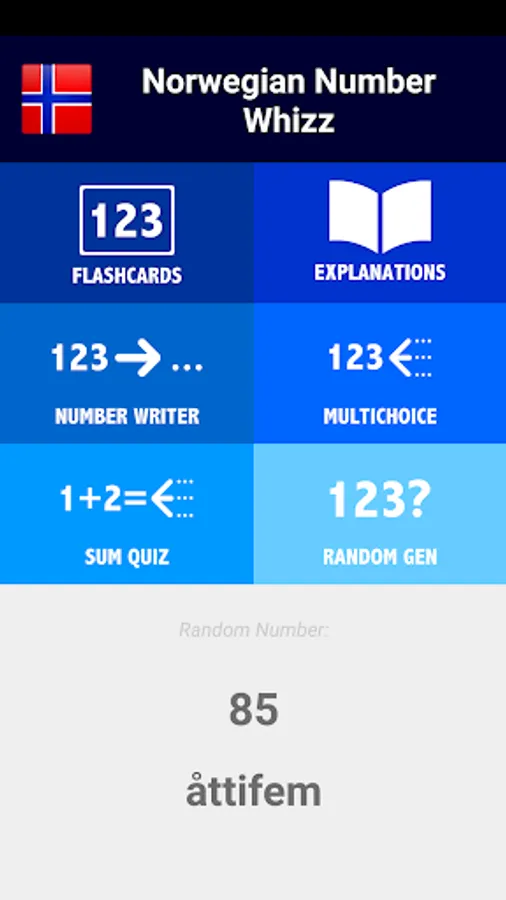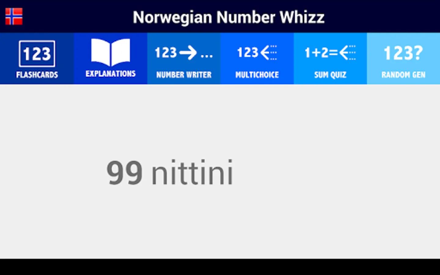 Norwegian Number Whizz acts as a learning tool and a reference guide to make that chore easier, helping you to master Bokmål numbers through clear guides and interactive activities.