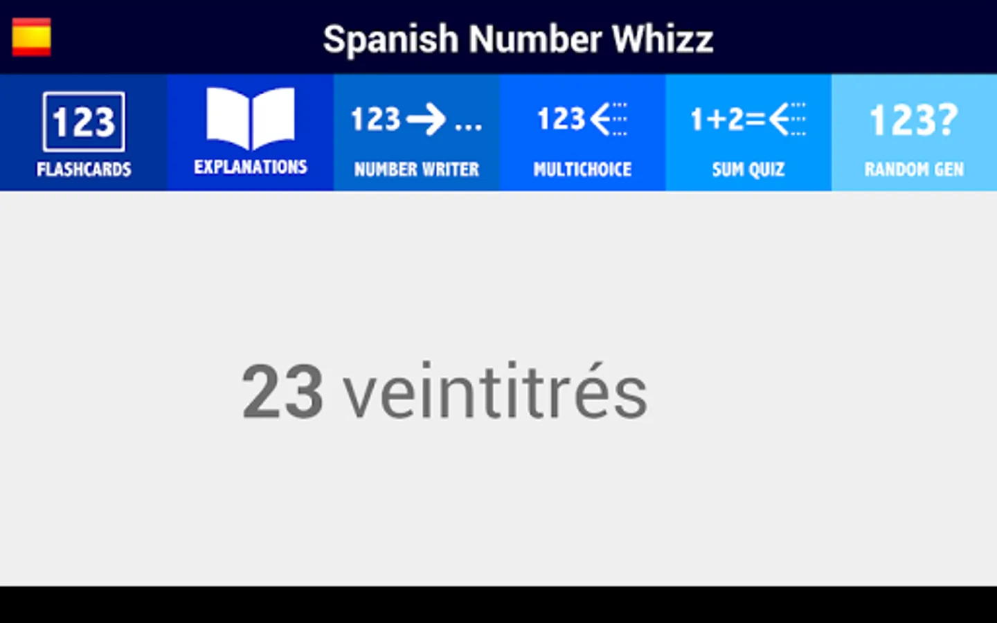 - Number Writer: type in any number up to 999,999,999 and Spanish Number Whizz will write it in words