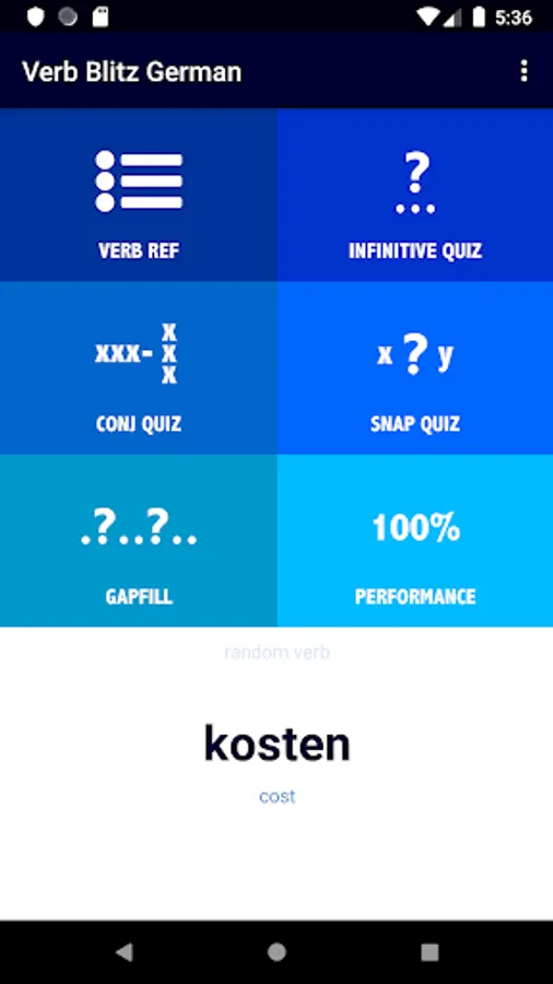 The verbs selected represent some of the most commonly used German words, so German Verb Blitz is a great way to increase and practise your everyday vocabulary, too!