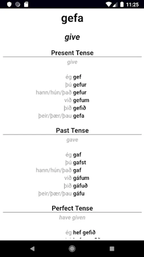 Learn and practise Icelandic verbs with this interactive verb reference. With over 270 commonly used verbs presented in the both past and present indicative conjugations, Icelandic Verb Blitz is a clear and effective way to refresh and revise your grammar skills, as well as expand your Icelandic vocabulary.