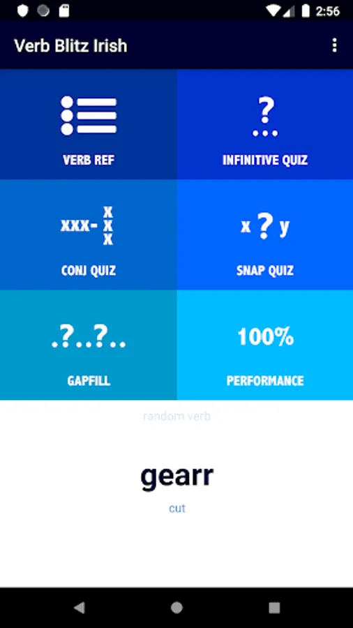 Irish Verb Blitz - the conjugation reference and practice app with the tiny (<2mb) footprint!