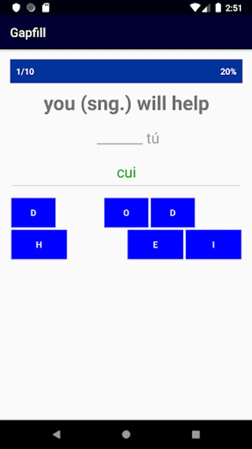 - Gapfill: can you spell out the missing word in the conjugated sentence?