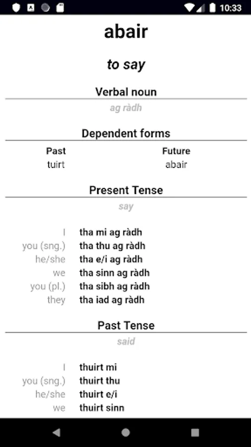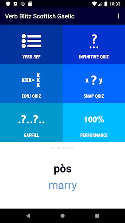 Scottish Gaelic Verb Blitz - the conjugation reference and practice app with the tiny (<2mb) footprint!