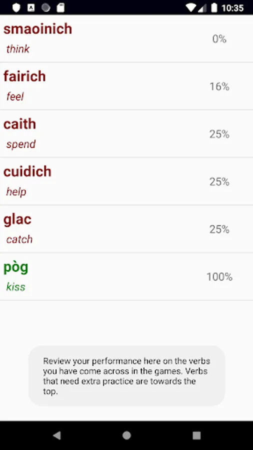 The verbs selected represent some of the most commonly used Gaelic words, so Scottish Gaelic Verb Blitz is a great way to increase and practise your everyday vocabulary, too!
