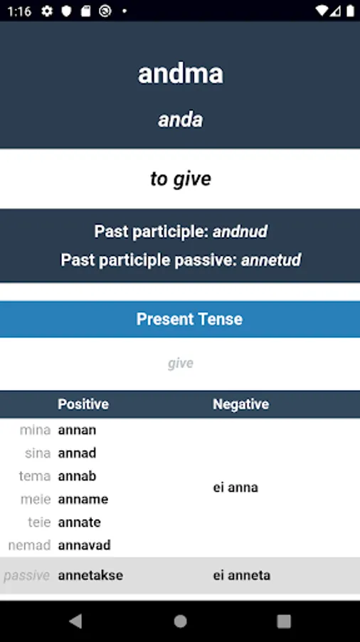 Estonian Verb Blitz - the verb reference and practice app with the tiny (<2mb) footprint!
