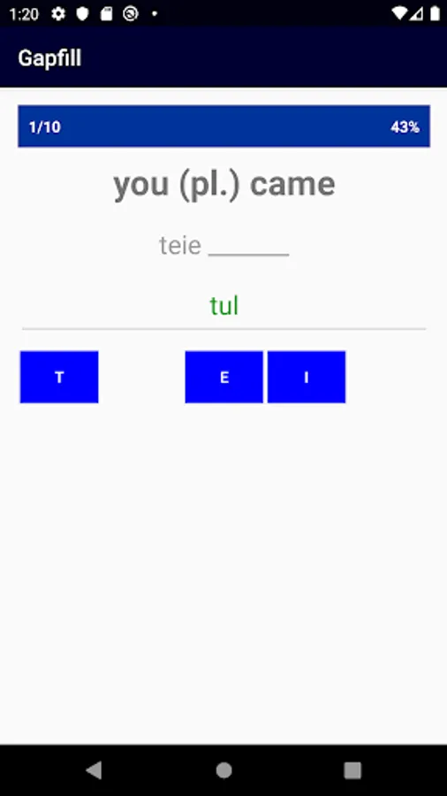- Gapfill: can you spell out the missing word in the conjugated sentence?