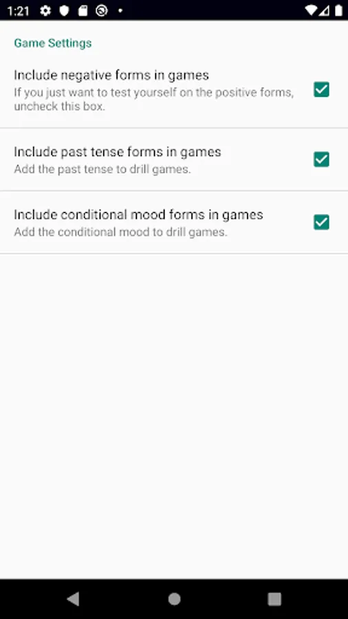 In each game, you can choose to play with just the verbs you have ticked as 'done' in the master list, or, for an extra challenge, the whole bank of verbs. The app will even track your performance throughout the games, so you can check at any time the entries you're finding trickiest.
