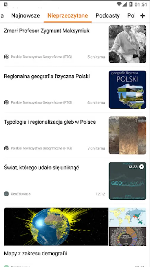 This application makes it easier to search for geography-related content on the Internet. Information about new materials will appear automatically, both in the form of articles on the website, podcasts or films.