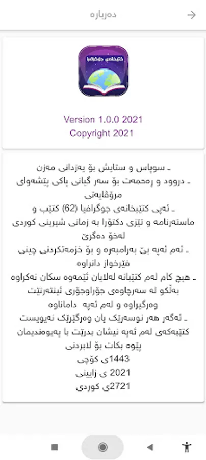 ــ ئەپی کتێبخانەی جوگرافیا (62) کتێب و ماستەرنامە و تێزی دکتۆرا بە زمانی شیرینی کوردی لەخۆ دەگرێ