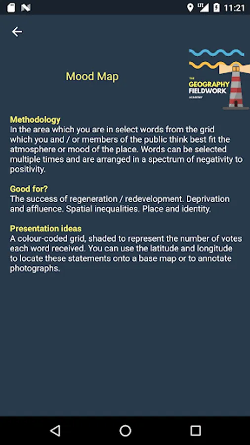 GEOGIT has been designed to modernise fieldwork and reduce paper consumption by enabling electronic data collection of 35 different methods ranging across both physical and human geography investigations. GEOGIT uses your phones ability to log your coordinates saving not only your data but the exact location in which it was recorded.