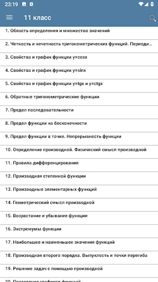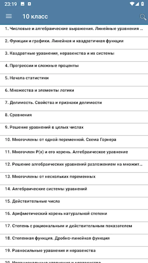 The content of the course Algebra and the beginning of mathematical analysis (Grades 10-11):