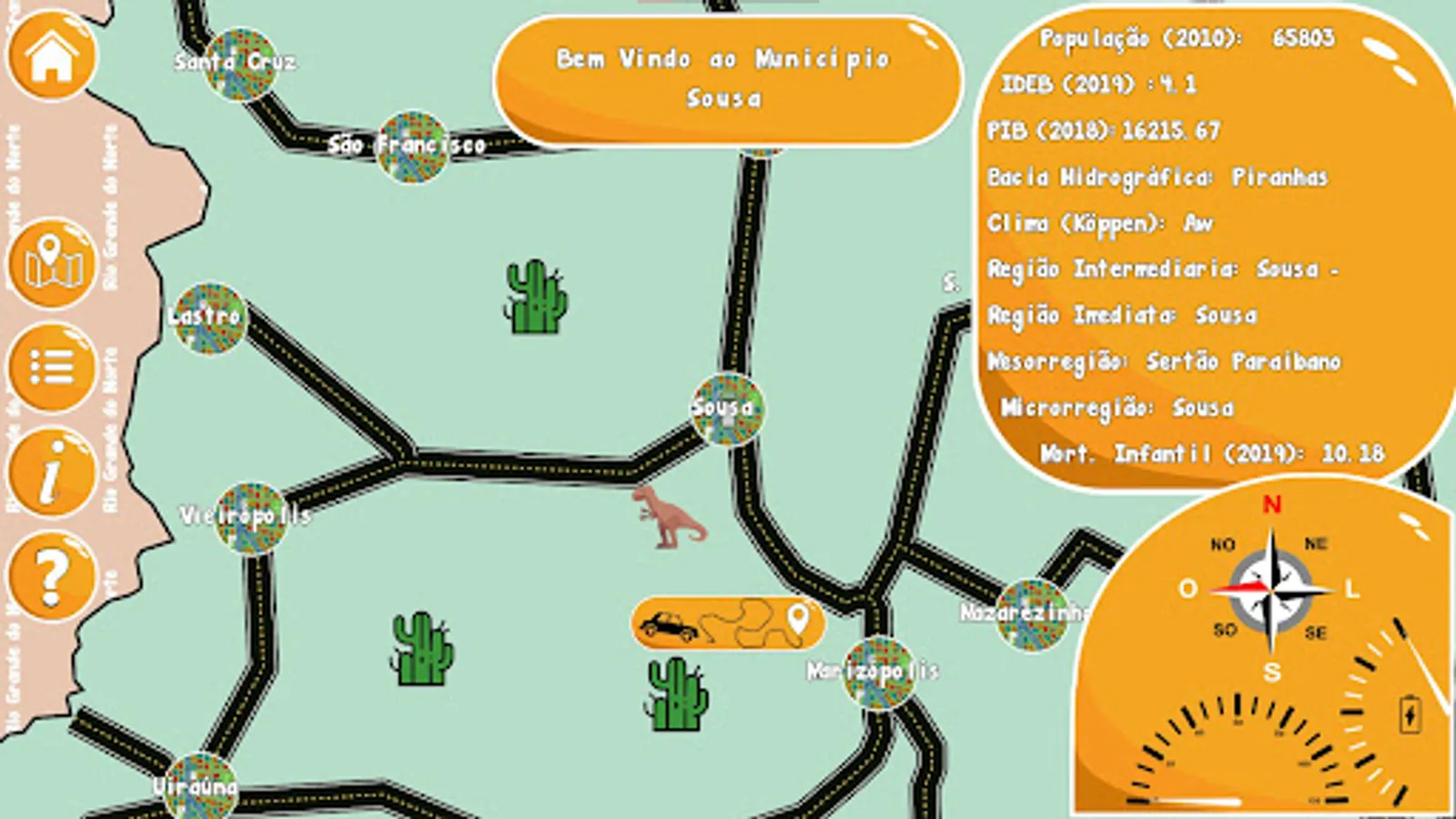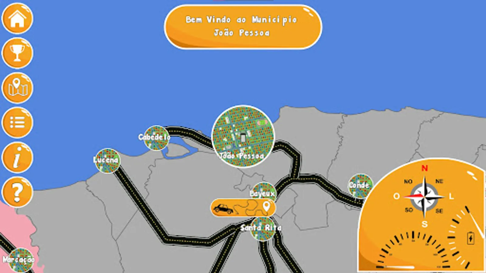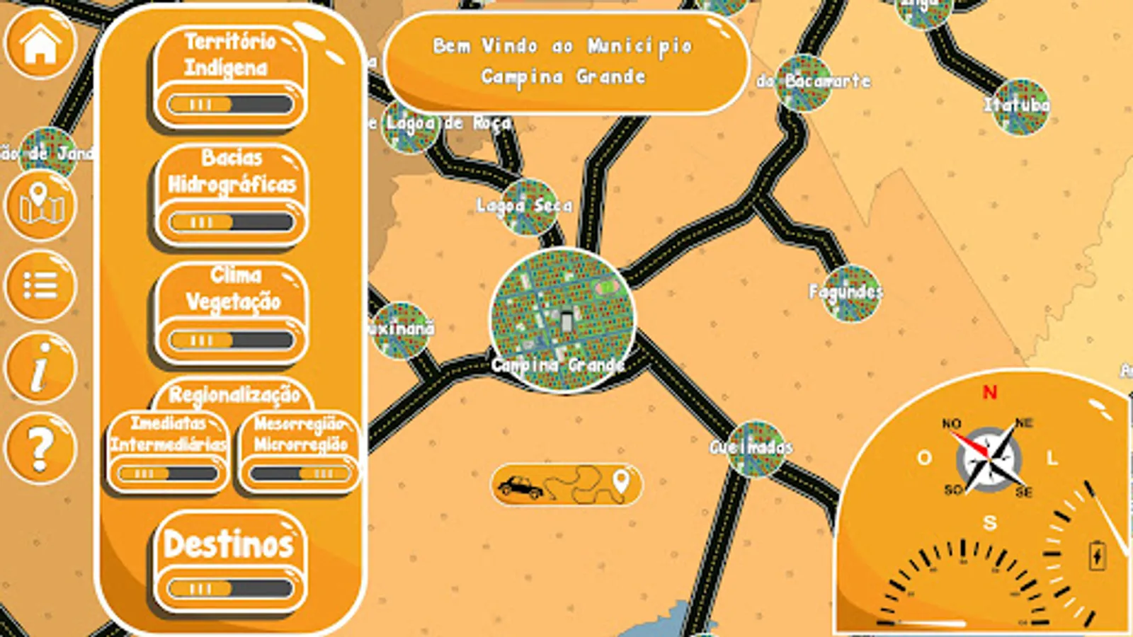 This game is the result of the Course Conclusion Work (TCC) of a Geography student at the Federal University of Campina Grande (UFCG). It consists of a joint initiative with the Group of Studies and Research in Education, Environment and City (GEMAC) expressed in scientific initiation projects, technological innovation and other productions aimed at the renewal of pedagogical resources for teaching Geography in the form of games that evade the mnemonic approach.