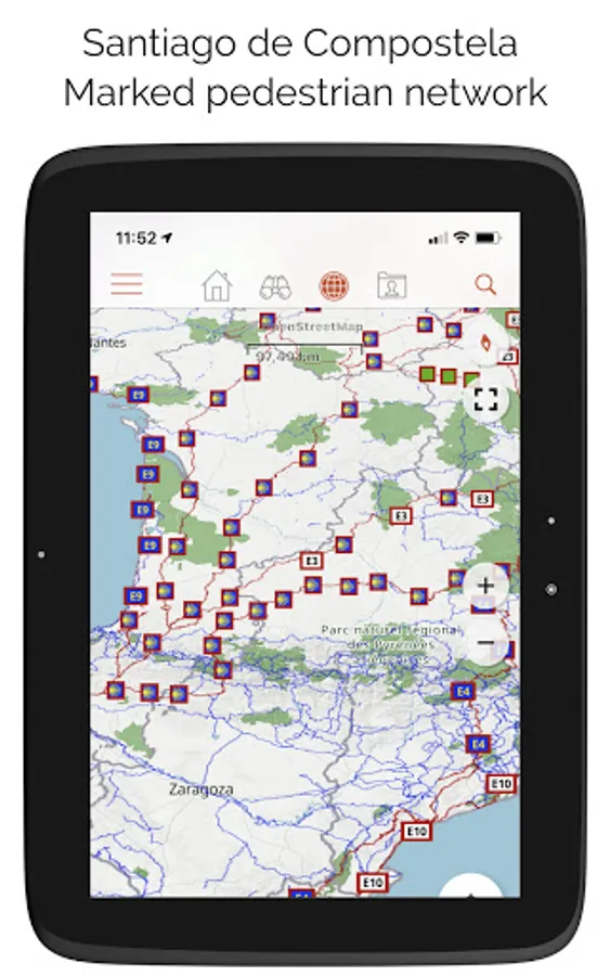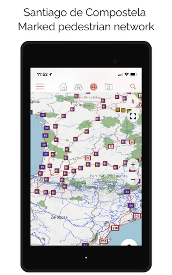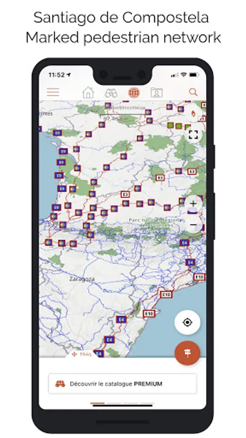 • Discover GR hiking paths, European hiking routes, Santiago de Compostela routes for pilgrims, etc.