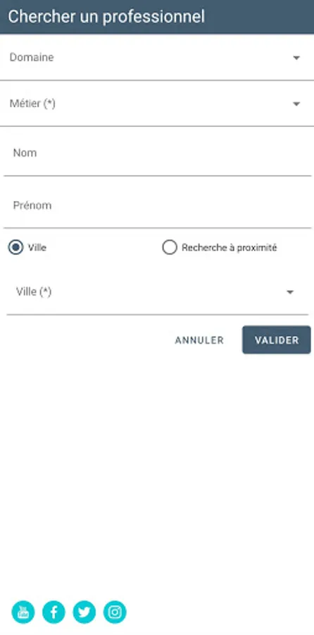 • To search for a professional, all you have to do is fill in the search criteria (job, city), the professionals will be displayed on the map with the possibility of displaying them also in list mode via the main menu of the application.