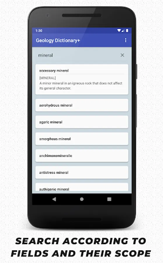Geology Dictionary+ provides a compendium of more than 10.000 terms that are central to a broad range of geological sciences and related fields like petrology, mineralogy, geochemistry, crystallography and paleontology.