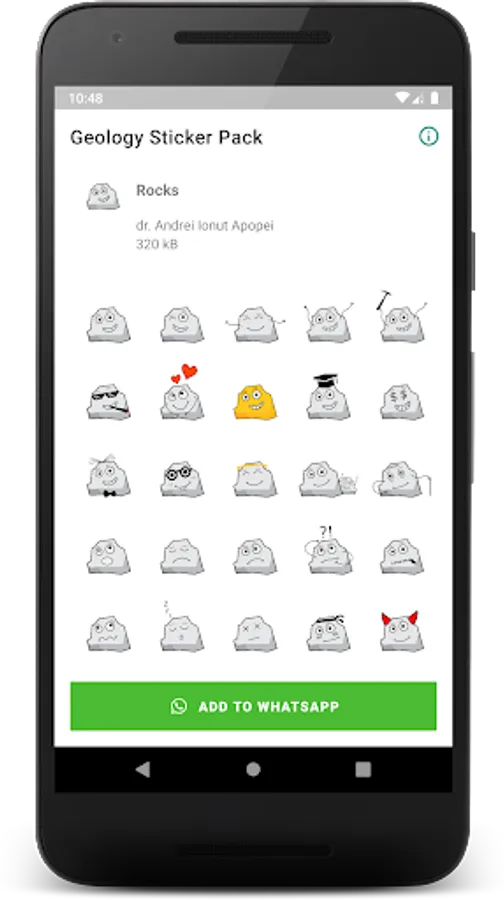 Now you can share funny geological stickers with Whatsapp to your geologists, friends, and family by using Geology Stickers for WhatsApp (WAStickerApps). These packs include an amazing variety of rocks. The stickers, also called emojis or memes, will bring your WhatsApp conversations a new geological look.