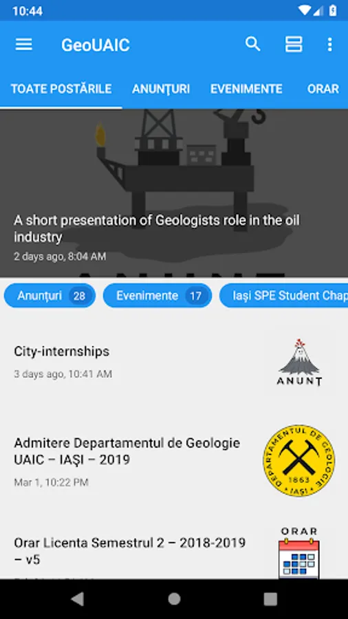 Aplicaţia Departamentului de Geologie, din cadrul Universităţii "Alexandru Ioan Cuza" din Iaşi.
