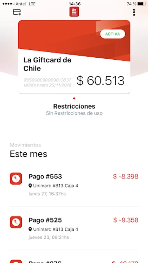 App to upload your giftcard Unimarc, Wholesaler 10 OK Market, Alvi.