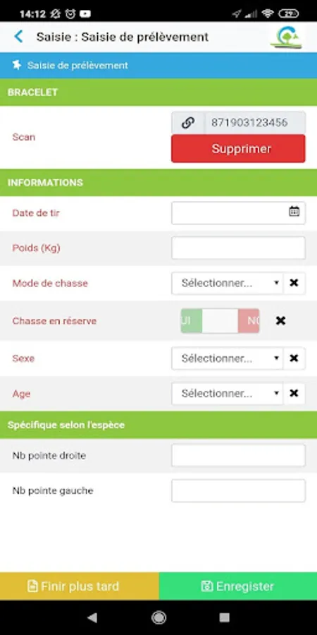 In test in 2019, this application does not involve any mandatory use and is not a tool for any control of its users. The data collected in the context of its use may, however, be valued for purposes of scientific, sociological, economic and strategic studies within the framework of the Hunters' Federations of New Aquitaine.