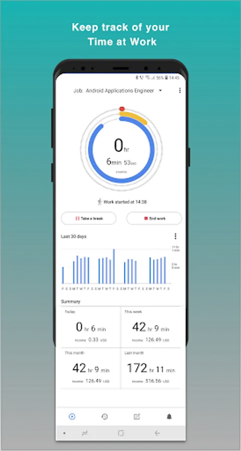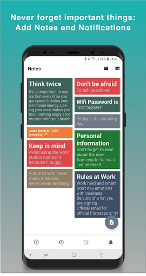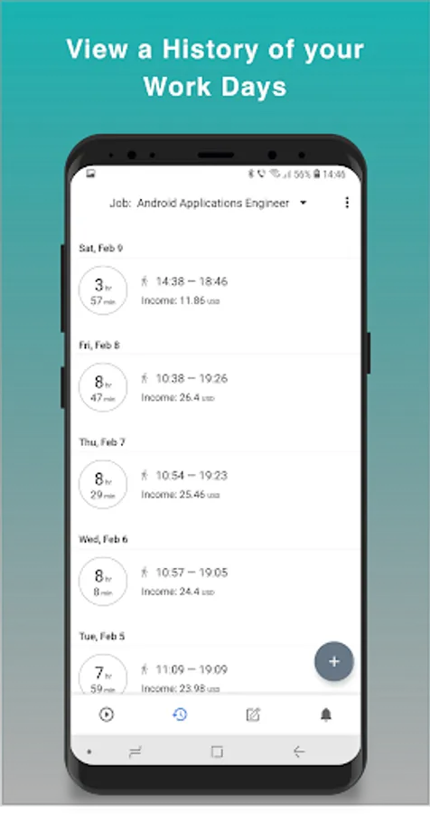 WorkLog App creates a history of time intervals which you can view and edit. It also creates a summary with the total Work Hours for the current Day, the current Week and current Month. By doing so, it makes filling out a Timesheet a lot quicker. You can add notes and notifications with different colors so you never forget the important things.
