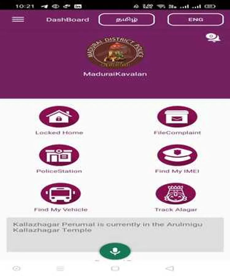 An android mobile application specially built for Madurai people to give facilities such as locked home monitoring system, E-compliant portal, Madurai Police stations and officers details for Madurai people launched by Madurai District police.