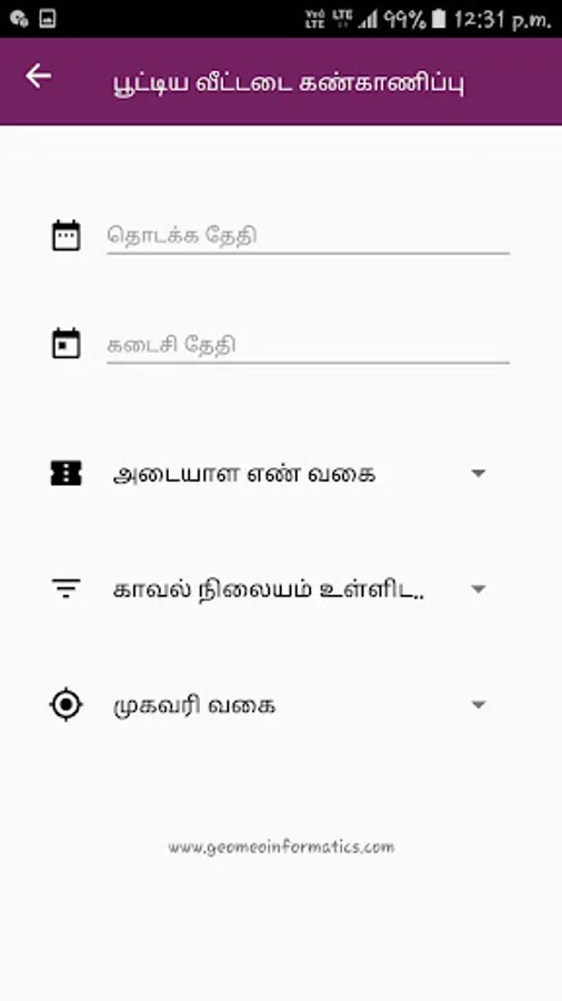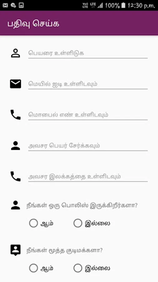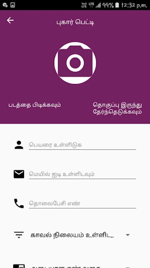 An android mobile application specially built for Namakkal people to give facilities such as locked home monitoring system, E-compliant portal, SOS, Police announcements, Special services, Namakkal Police stations and officers details for Namakkal people launched by Namakkal District police. App will be available in both Tamil and English.