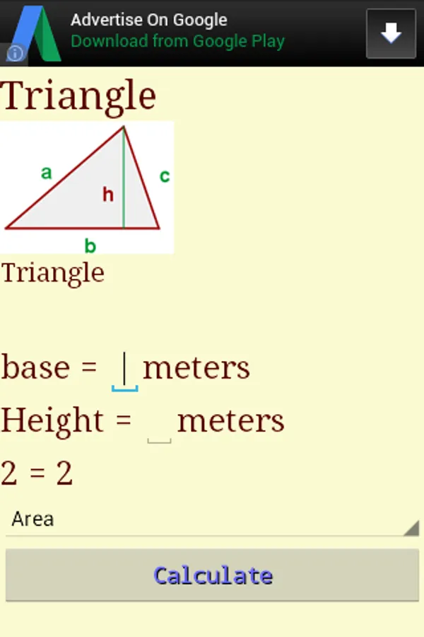 Basic Geometry allows you to perform basic calculations and have at your fingertips the most important equations of Geometry. Ideal for teachers and elementary, middle school students.