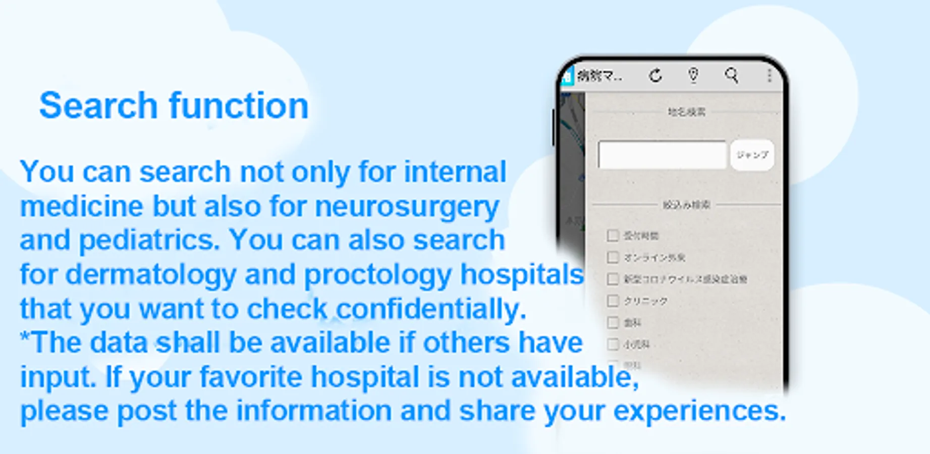 The hospital information sharing map is for those who use hospitals, those who want to find a hospital in the future,