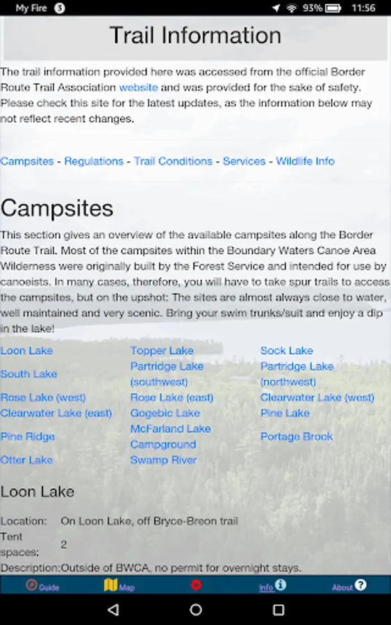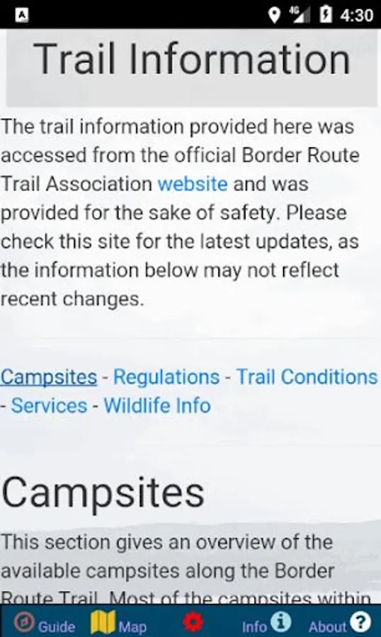 For those who prefer a more traditional information delivery style, there are a series of sections dedicated to describing the trail conditions, campsites, and other info through writing. This information is always changing, so be sure to check for the most recent updates at the official Border Route Trail Association website!