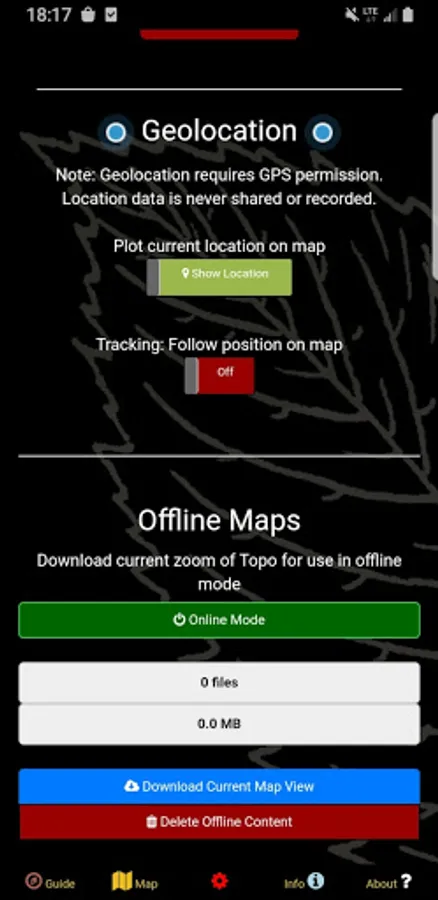 This app is designed for the remote wilderness! Integrated geolocation makes it easy to figure out exactly where you are and track your precise movement, even in the thickest of tree stands. You can download offline map tiles in advance if you are planning to venture beyond the reach of a cellular connection in your quest for fungus. It works just fine in 'Airplane Mode'!