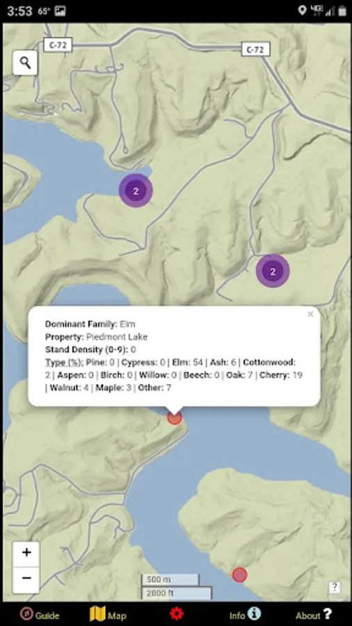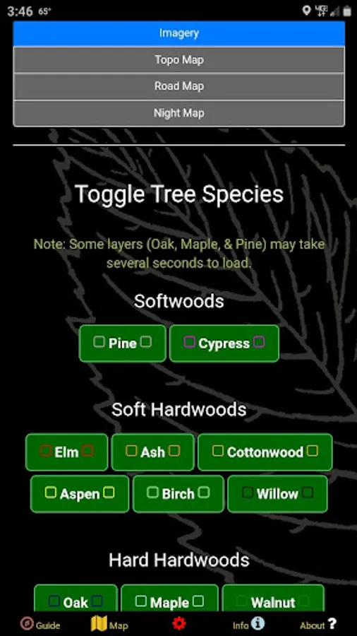 You can manually toggle given tree species on or off if you're an arborist specifically interested in forestry rather than mushrooms. This app is a great way to discover old forest stands or to learn how to identify certain types of trees by look. If you are interested in finding birch bark, oak acorns, apple trees, sugar maples, walnuts, or hickory nuts, just turn on a given layer and eliminate the guessing and frustration! Need some pine needles and cones for an art project? Pick from thousands of woodland patches laden with beds of them!