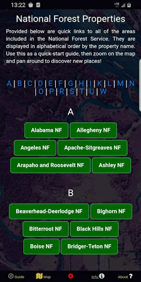 The United States of America is a vast land full of lush forests, indescribable landscapes, and fascinating history. You may already know some of the iconic landmarks and wildernesses that the US has to offer, but did you know that there are more than 100 National Forests? This app is your guide to discovering the unspeakable beauty and recreational potential that is contained within these fabled domains!