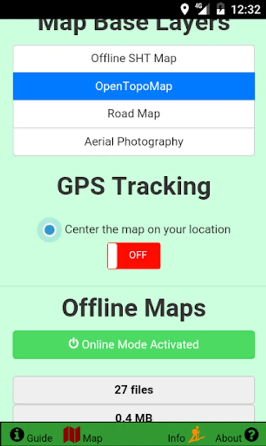 This app requires a few special permissions in order to allow a complete user experience. These features include access to the internet to view and download map tiles, storage write and delete permissions to manage downloaded tiles, and GPS geolocation so that you can locate yourself on the map. All of these features are optional and you can choose whether or not to use them. The app will work in airplane mode.
