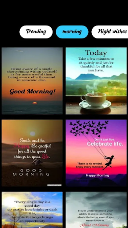 There are 1000+ beautiful inspirational morning wishes available in this app and is growing day by day. It's the time to spread the joy with this fabulous Good Morning App with your loved ones
