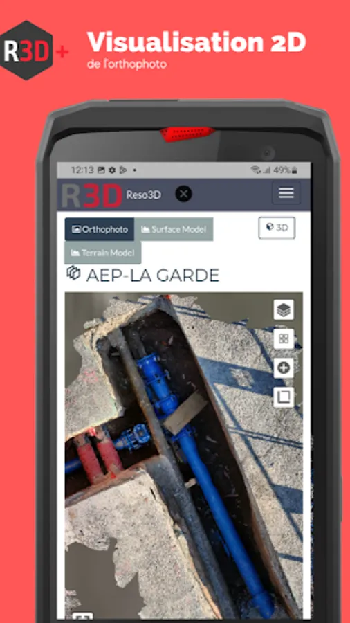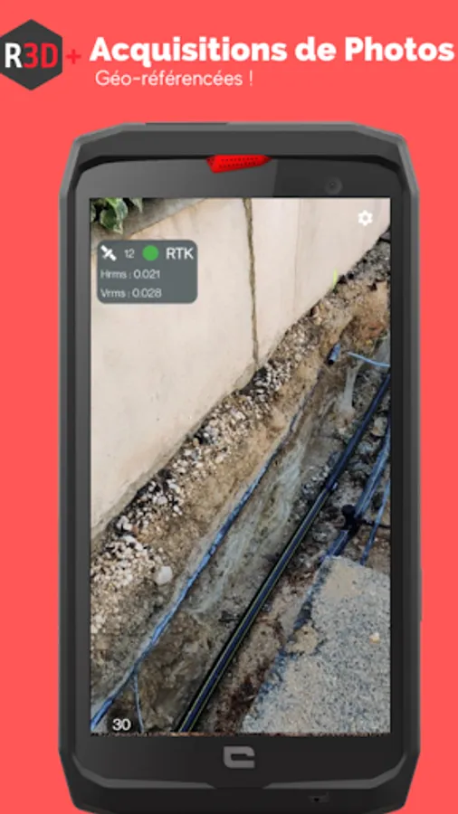 Coupled with Reso3D's GNSS, capture centimetric precision images and obtain a georeferenced point cloud of the trench in minutes.