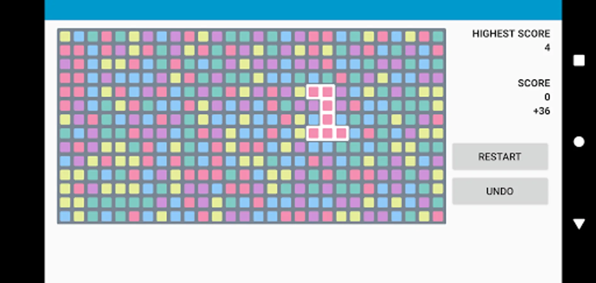 SameGame is played on a rectangular field, initially filled with five kinds of blocks placed at random. By selecting a group of adjoining blocks of the same color, a player may remove them from the screen. Blocks that are no longer supported will fall down, and a column without any blocks will be trimmed away by other columns always sliding to the left. The goal of the game is to remove as many blocks from the playing field as possible.