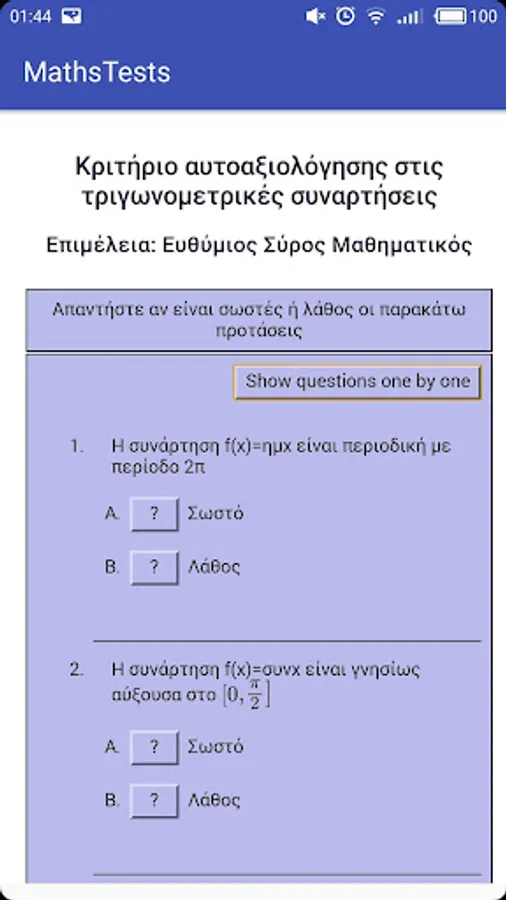 Applying Maths - Criteria Self-evaluation aims to extend the mathematical horizon of the student and the enrichment of teacher training materials.