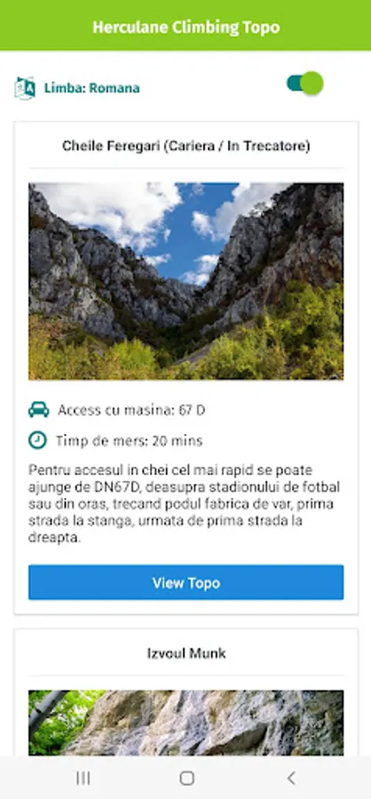 En: Find your way to your favourite climbing wall. When you're ready to climb, Herculane Climbing Topo is your guide.