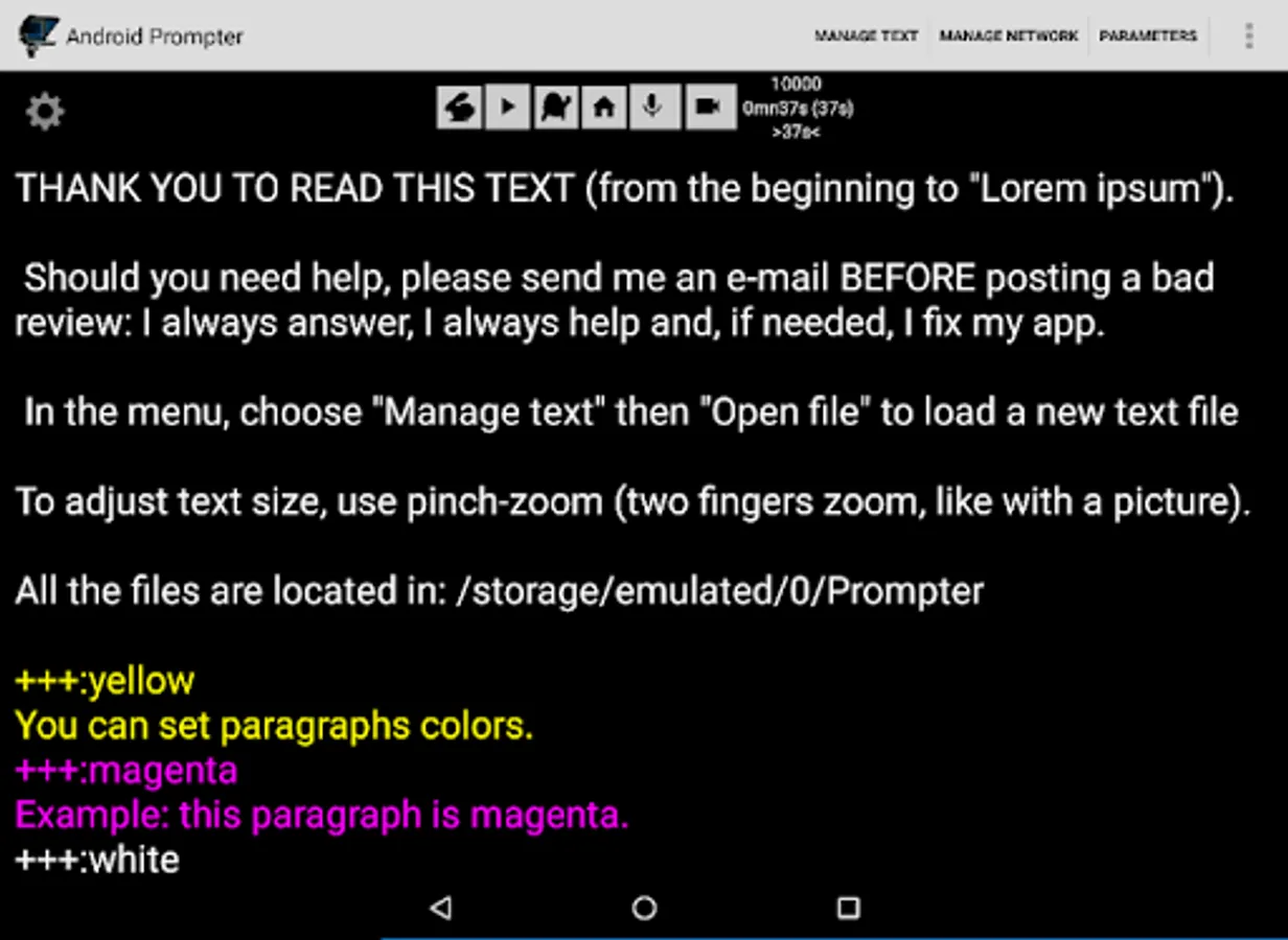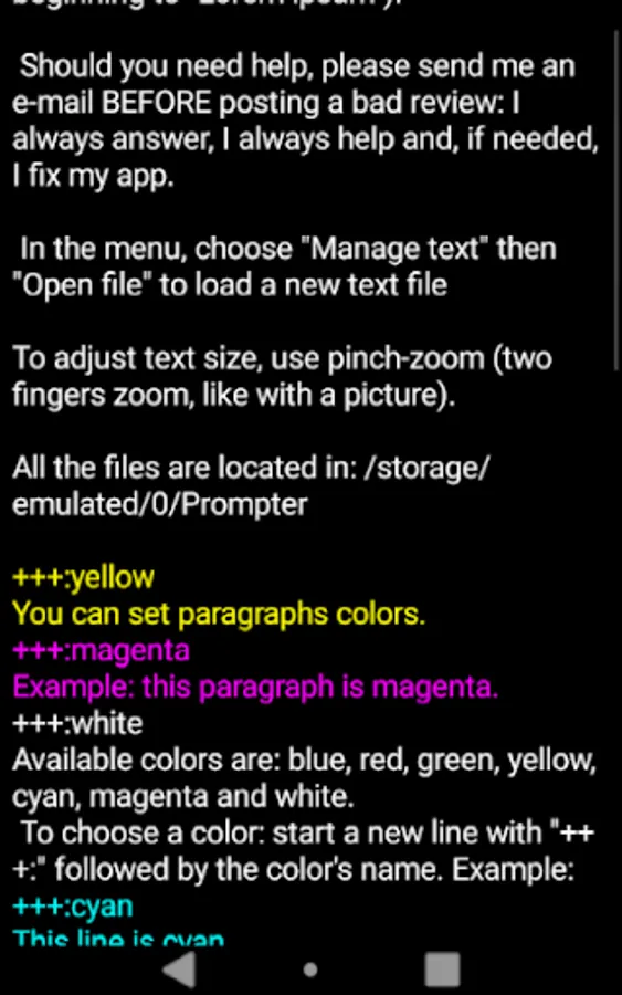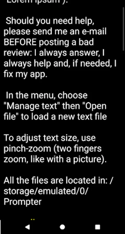 If you want a much better and more powerful prompter, way easier to use, the only one able to use text files, PDF or Google Docs files: please give "ApdfPrompter" a try (search for "apdfprompter" in Google Play).