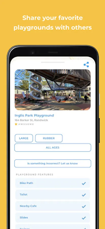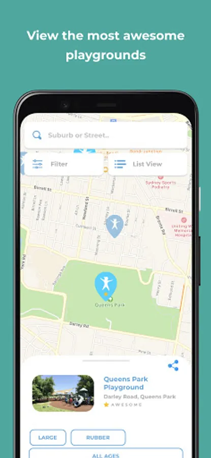 Possum Playtime makes playtime simple by allowing parents and carers the ability to search and filter for playgrounds based on specific interests (nearby cafe, enclosed, bike path etc).