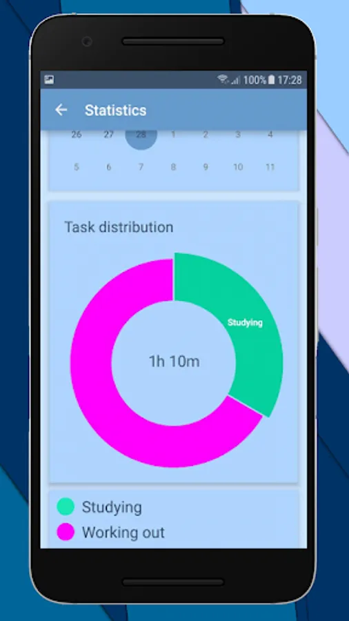 The app also provides a statistics screen where you can see your progress throughout the week or the month, as well as more information for each day individually.