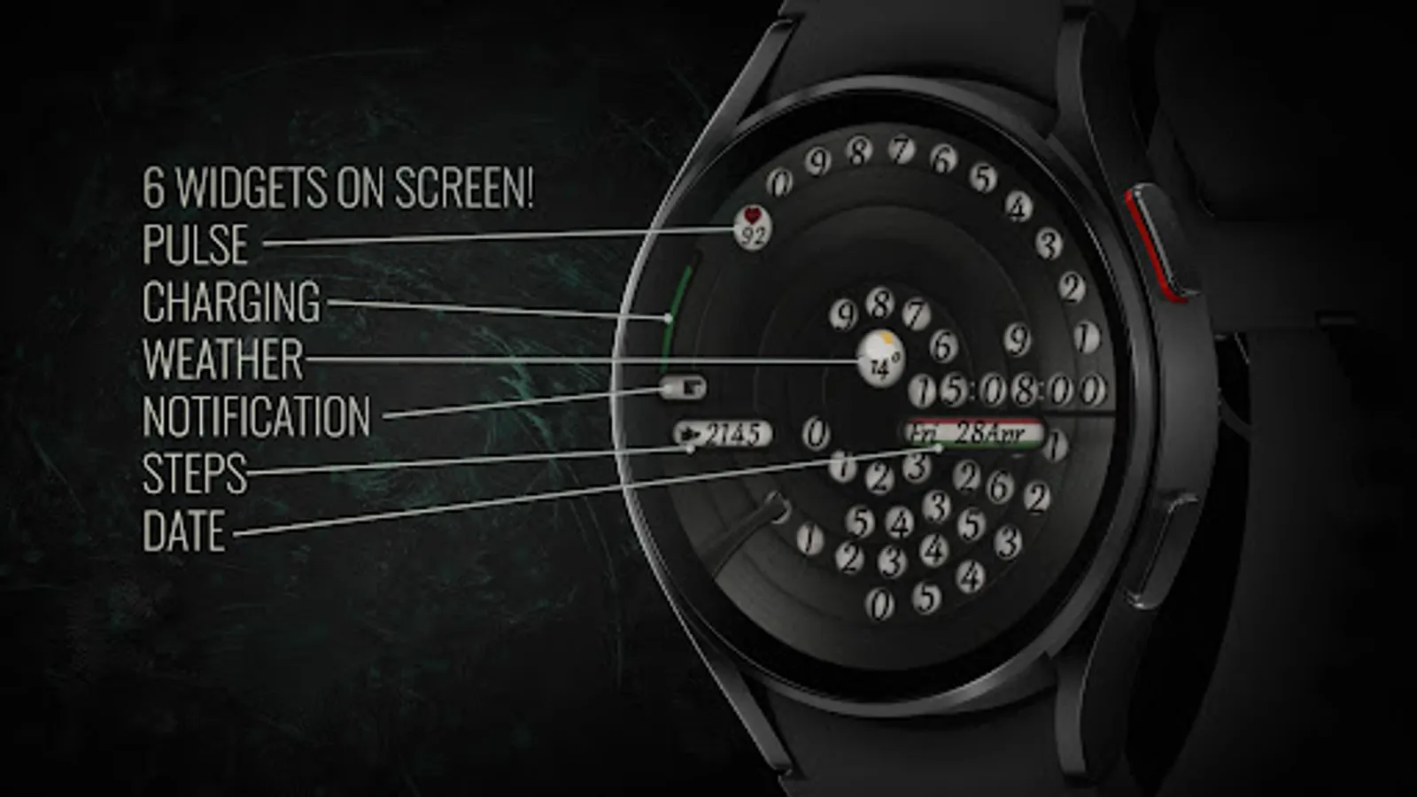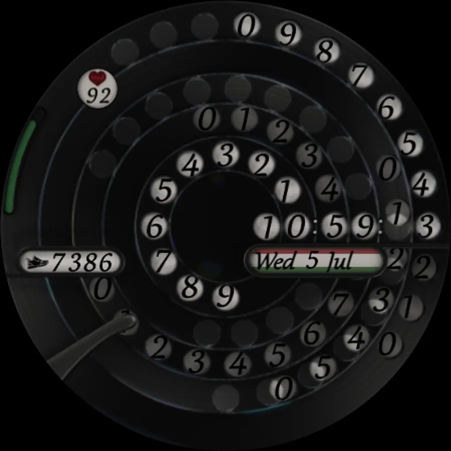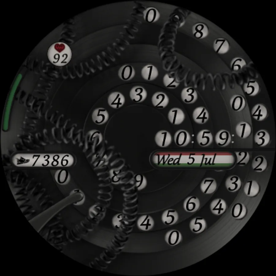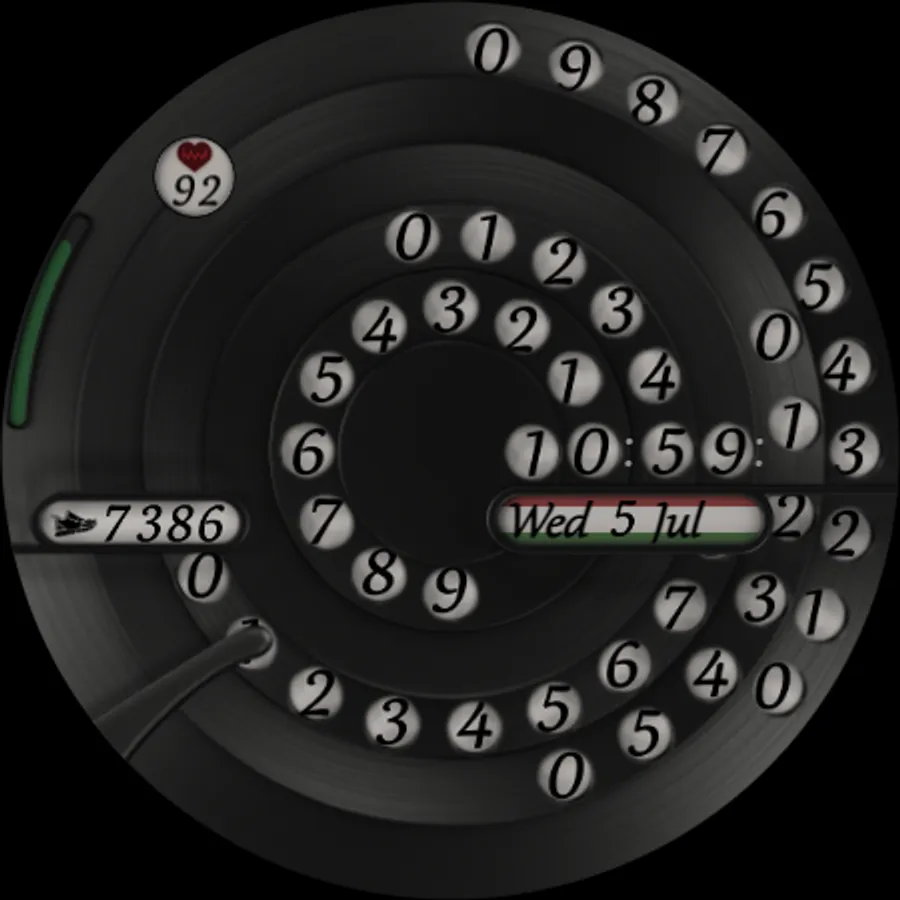 Introducing the Modern Disk Wear OS Watch Face – a contemporary, minimalist, and unique analog watch face inspired by the classic disk phone with a rotating dial. This design is far from retro, showcasing a modern twist on a familiar concept. It's specifically designed for Wear OS devices with API level 28+.