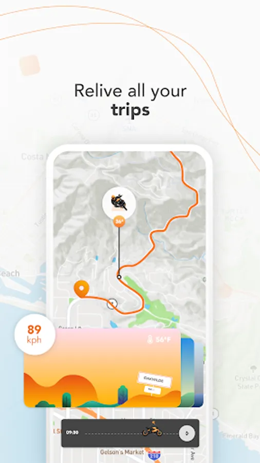 Thanks to our integrated GPS tracker, locate your motorcycle in real-time anywhere in the world. Replay your trips in detail: Experience an ultra-precise route, get a look at the weather, check your speed and lean angle at any specific moment of your trip. You can have it all! Share your location in real-time while riding in a remote or dangerous area to reassure your closed ones.