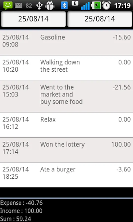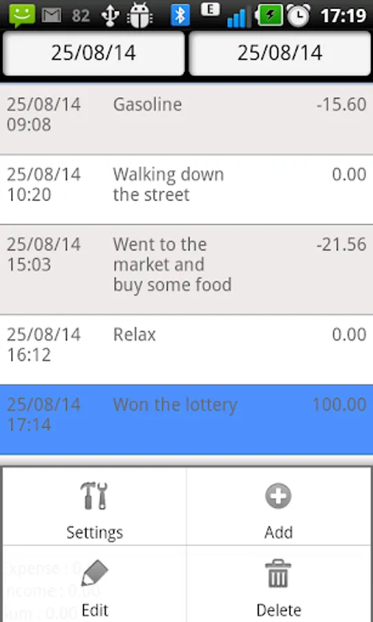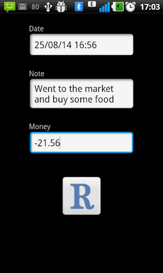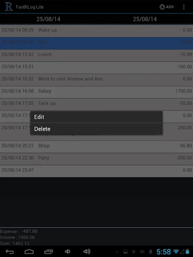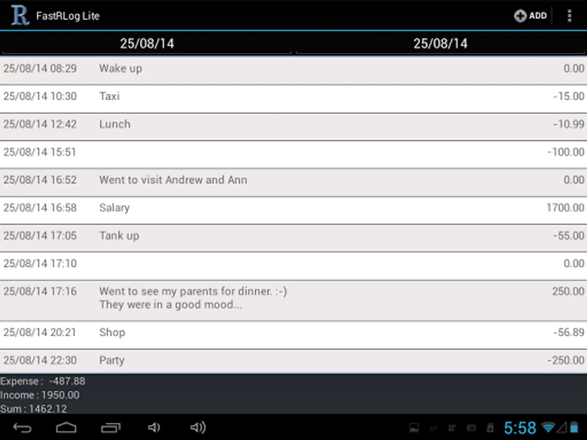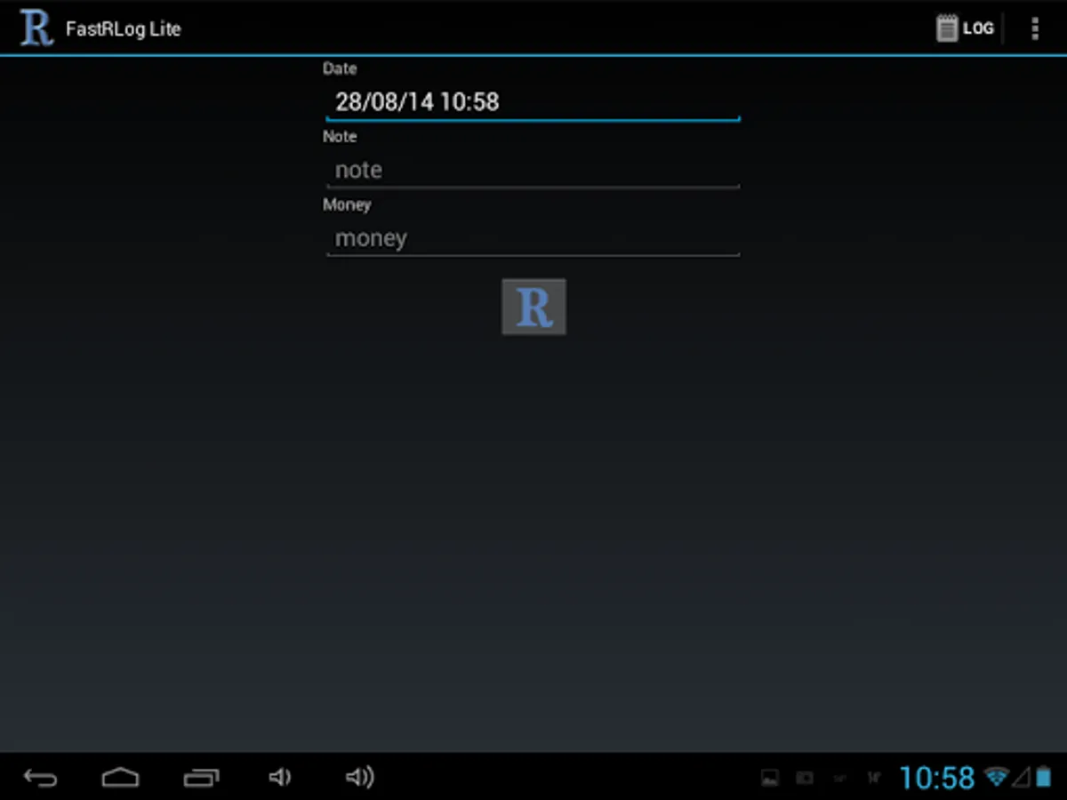 The application allows you to quickly record events and (or) expense/income in the log.