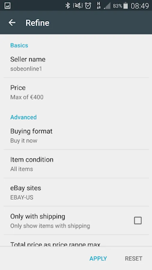 * Unique sorting criteria: total price, shipping, bids count, item location