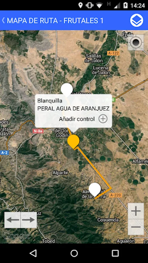2. Select the route or the control point you want to work with and click 'Add Control' on the map.