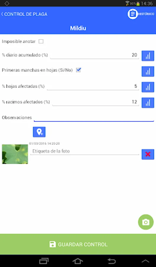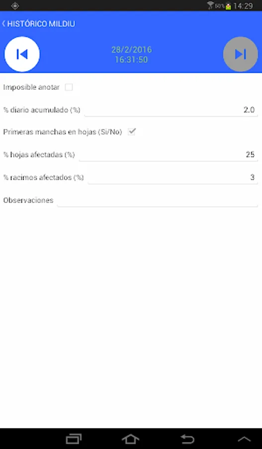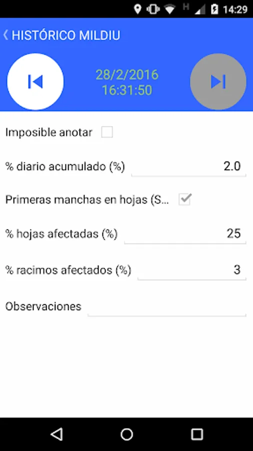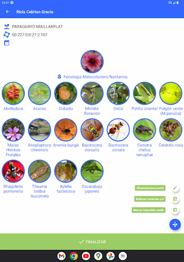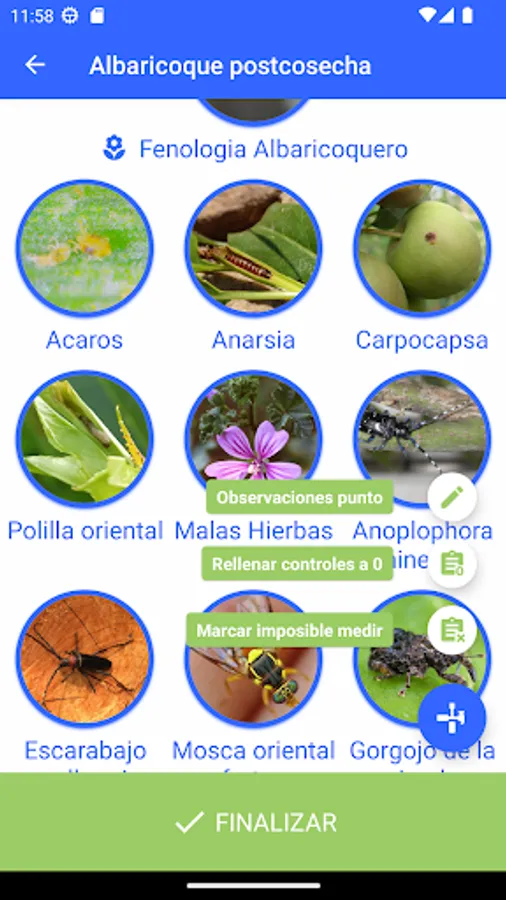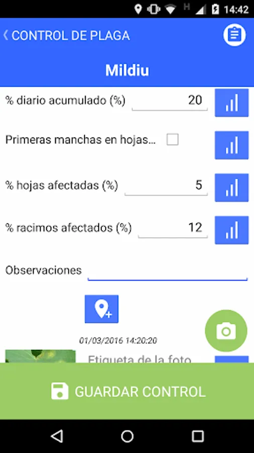 4. Fill in the data and keeps control for each of the pests and also for the growth stage of the crop.