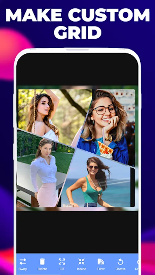 Photo Editor Pro is not just any other photo editor app - it is a collage maker with professional editing tools. With its easy-to-use interface, you can combine multiple photos with various frame patterns and photo grids, apply many photo filters, and add stickers to your custom photos. You can even display your images in a stunning collage format and share them with your friends and family.