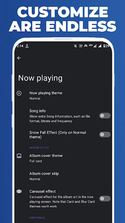 To enjoy music with stylish and simple user interface, Music Player is your perfect choice. You can choose a color theme you like in this MP3 music player.